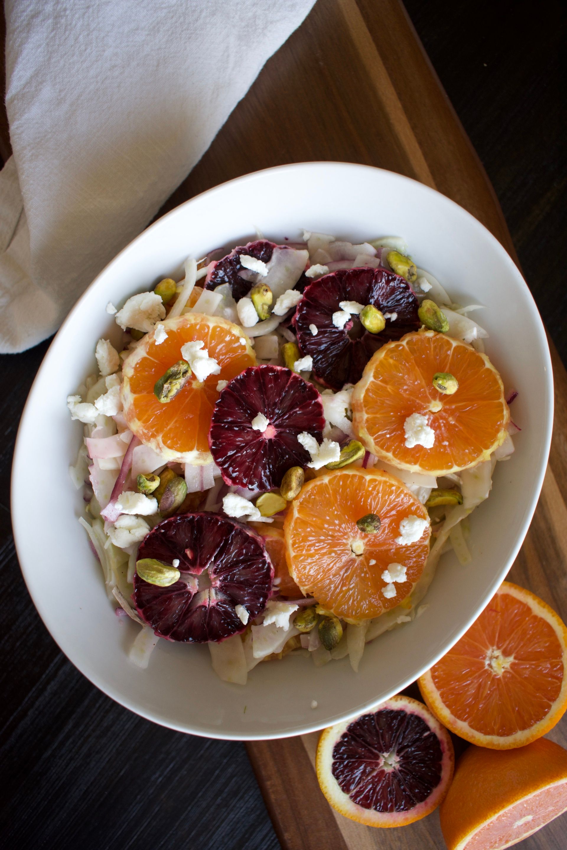 Assemble the salad: In a large bowl, toss together shaved fennel, orange slices, and red onion. Drizzle with the dressing and gently toss to coat.